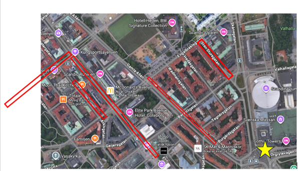 Old town area. Located approx. 2 600 metres from the congress venue. Tram number 6 from Korsvägen to Järntorget or Hagakyrkan.